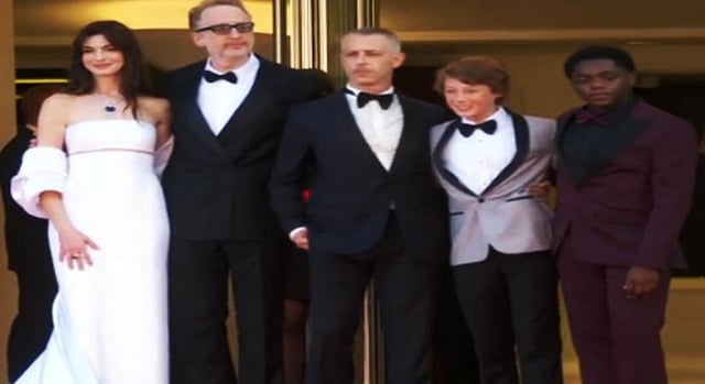 The official Twitter of Festival de Cannes shared a string of images from the photocall session of team 'Armageddon Time' on their handle, one of which captures Anne Hathaway hiding her face with a diamond ring-clad hand.