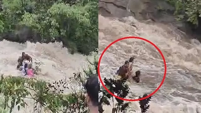 In the viral Bhushi Dam accident video, the family can be seen standing in the middle of the strong current of the waterfall in the Bhushi Dam. A few other people can be seen in panic and asked the family to try to come back on the ground. The family stuck in the strong currents can be seen holding each other tightly. A few people can be seen trying to help the family by extending long branches of trees so that they could hold it come on the ground.