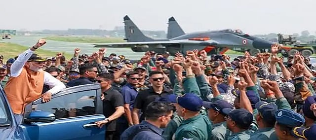 The Prime Minister used the moment to express deep gratitude to the armed forces. “Every Indian is proud of you... you have written history. I have come for your blessings. You are an inspiration for this and the coming generations. I want to salute the Army, Navy and Air Force.”