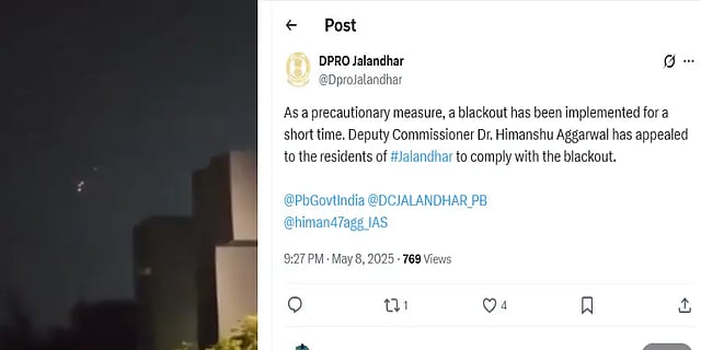 Jalandhar DC's official statement reads, "You are aware of whats going on. But this is the exact situation what we practised for in last 3 days. Our armed forces is taking care of most of things and they have neutralised most of the drones. We all should support them and help in adhering to the protocol of black out as well as prevention of fake news/videos/msgs that can spread panic amongst common people. Civilian population is not being targeted as per official information. So plz dont worry and be calm."