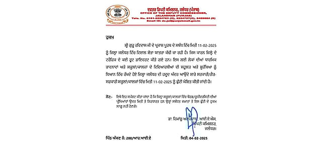 Jalandhar, February 6: In view of the grand Shobha Yatra to be taken out on February 11 to mark the Prakash Purab of Sri Guru Ravidas Ji, Deputy Commissioner Dr. Himanshu Aggarwal has announced a holiday for all government and private schools and colleges within the Jalandhar district.