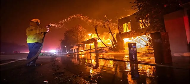 Los Angeles Fire or California fire started on Tuesday, but it became uncontrollable due to winds blowing at a speed of 112 km/h. This made it difficult for firefighters to control the fire. Due to the winds, it became difficult to extinguish the fire from airplanes. The situation was so intense that airplanes had to be used to extinguish the fire. Water and fire extinguishing chemicals were also dropped from the planes.