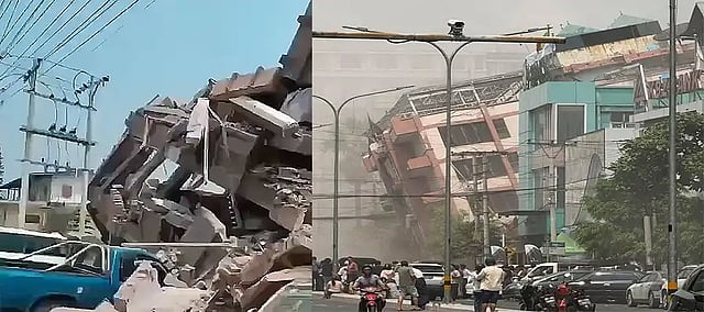 Reports suggest that two back-to-back earthquakes of magnitudes 7.7 and 6.4 hit Myanmar with strong tremors were felt in Thailand's capital, Bangkok. In one of the many videos, a high rise building can be seen collapsing. This prompted the government to declare an emergency and shut down metro and rail services. Strong aftershocks were also felt in Meghalaya and several northeastern states, Bangladesh, and China's southwest Yunnan province.