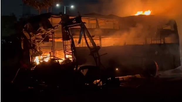 The bus engulfed in a fire soon after it met an accident with a trailer truck transporting diesel leaving 38 others injured earlier this morning in the Maharashtrian town.