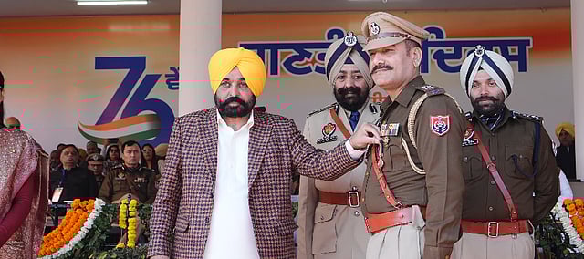 Punjab CM Bhagwant Singh Mann bestowed Chief Minister Rakshak Padak to Assistant Sub Inspectors Manna Singh and Rajinder Singh, Lady Senior Constable Kulwinder Kaur, Punjab Home Guard Gurdeep Singh and Senior Constable Gurpreet Singh.