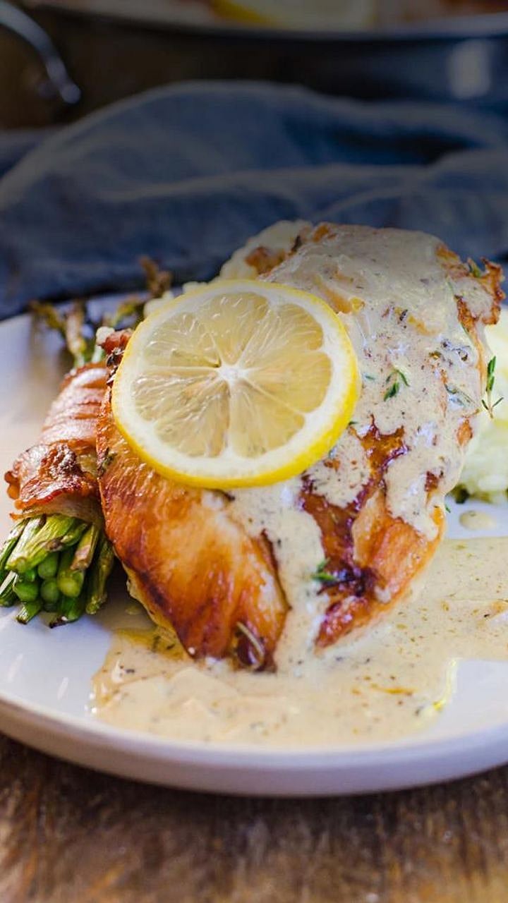Salmon with Lemon-Dill Sauce : Grilled or baked salmon fillet with a refreshing lemon-dill sauce.