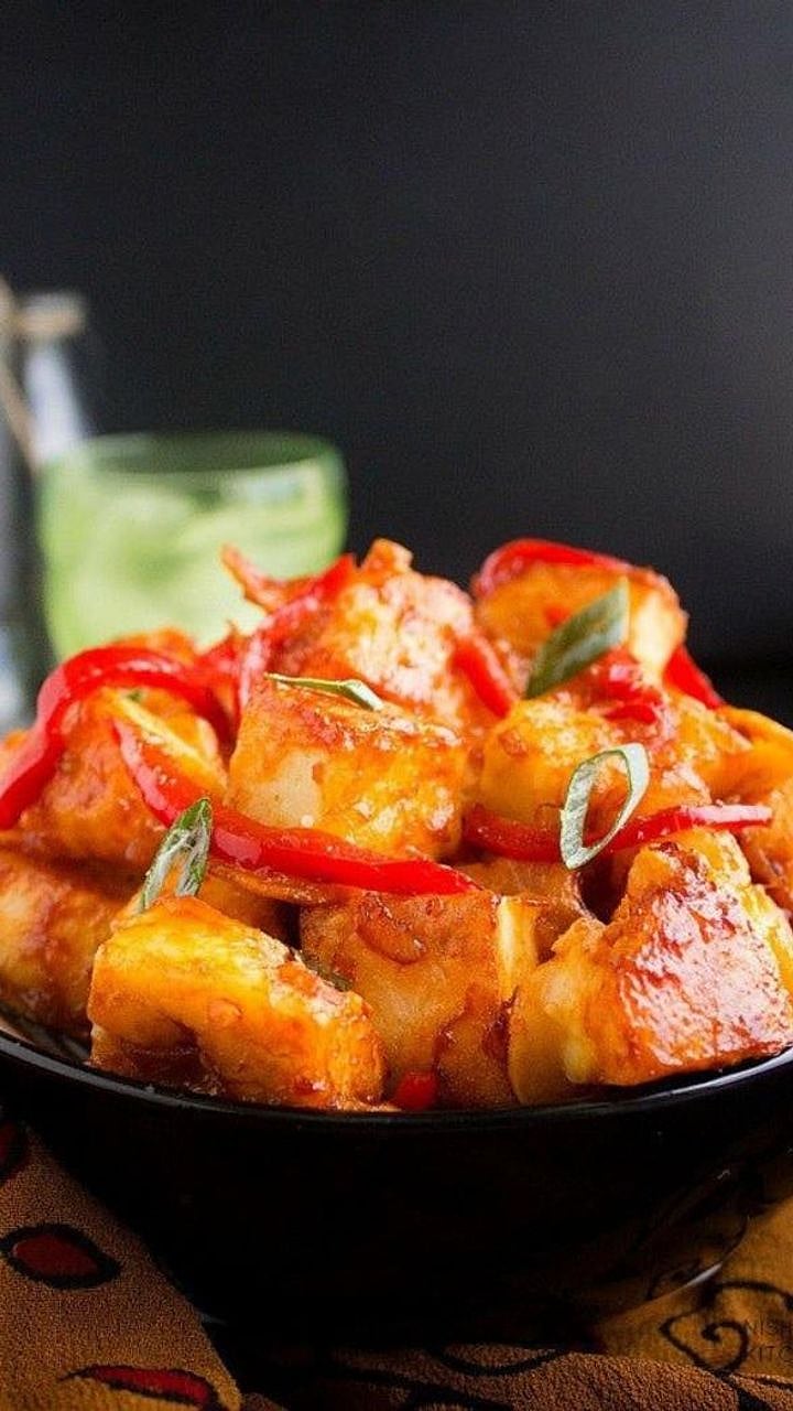 Chilli Paneer: Stir-fried paneer in a spicy and tangy sauce, an irresistible appetizer loved by many.