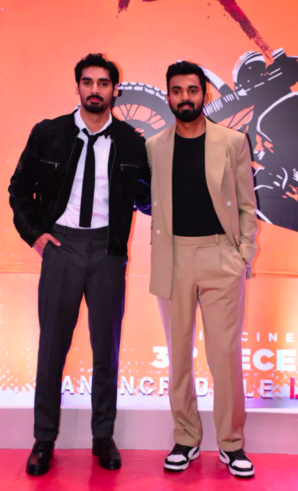 His older sister, actress Athiya Shetty, attended the screening with her partner, cricketer KL Rahul. She was dressed in a black blouse, black leggings, and a matching black jacket. KL Rahul donned a black T-shirt with a beige suit.