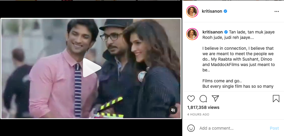 “I don't watch films much,” Tripathi says of SSR's craft. But, when shooting for a film in Lucknow, I saw Sushant's performances in "Dhoni," and that was my day off. On the screen, you can definitely see his hard work and skill.”